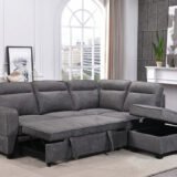 Be the first to review “Soft Grey Fabric RHF Sofa Bed Sectional with Storage and Tufted Design”